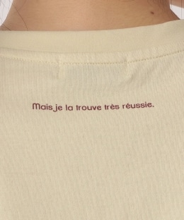 ベースカラーにチョイスしたイエローは「ママのレモンタルト」をイメージした優し気な表情。背中には小さく「mais je la trouve tres reussie.(うまくできた)」とプリントされたストーリー性を感じるデザインで、着ているだけで気分を盛り上げてくれそうです。