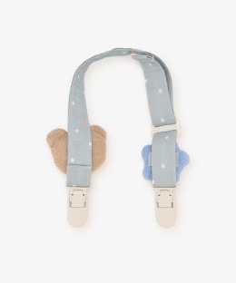 | 素材 | スタイ/表地:綿75%・ポリエステル25% 裏地:綿100% クリップ/パイル:綿75%・ポリエステル25% 中わた:ポリエステル100% ベルト:綿100% |