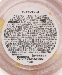 内容成分:水、エタノール、香料、可溶化剤、ゲル化剤