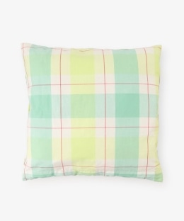 お部屋を明るく見せてくれる、爽やかな色合いのチェック柄デザイン。ソファやベッドに置くだけで存在感を放ち、インテリアのアクセントとして活躍します。ナチュラルな風合いの生地を使用しており、日常のくつろぎ時間にも重宝するアイテム。お手持ちのファブリックと組み合わせることで、よりまとまりのある空間作りをお楽しみいただけます。