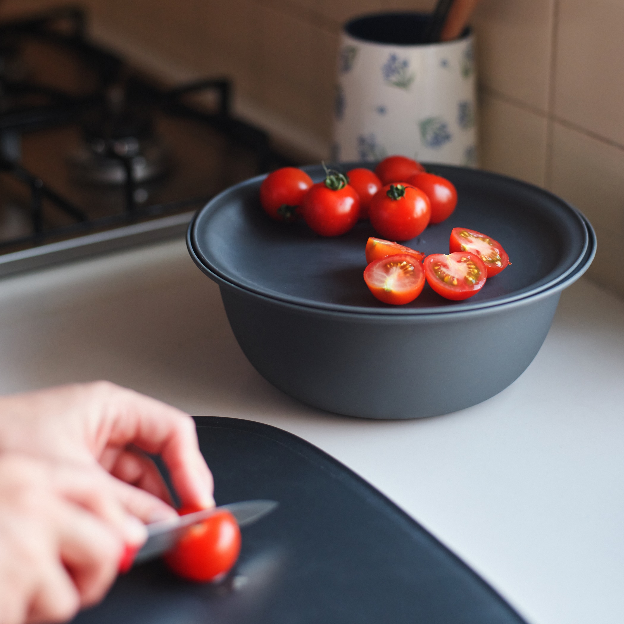 フタとして使えるトレーと、深さの違うザルとボウルのセット。