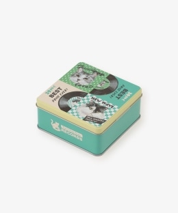 レコードショップのチラシのようなデザインがかわいいクッキー缶です。