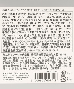 縦11.4cm/横11.4cm/厚み5.2cm/内容量16枚(フラワーストロベリー7枚、チョコチップ7枚、ネコ型プレーン2枚)
