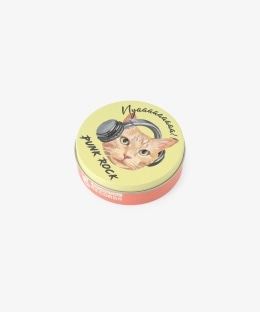 大胆なシャウトの文字やロゴを添えた、インパクトのあるデザインが魅力です。中にはイングリッシュブレックファストのティーバッグが3個入っています。ビビッドなカラーが目を引くスリムな丸型缶は、お茶を楽しんだ後も小物入れとしてインテリアのアクセントに。音楽好き、猫好きな方へ、遊び心あふれるギフトとして贈ってみてはいかがでしょうか。