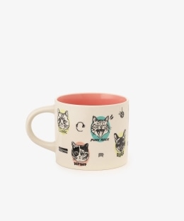 Instagram企画「モデルネコ大募集」で選ばれた、モデル猫たちのアートを大胆に描いたマグカップです。