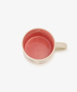ネコがさまざまな表情をしている、気分が上がるデザイン。内側と外側の色は塗り分けて、飲むときと外から見たときで異なる雰囲気に仕上げました。広い飲み口で適度に厚みがあり、あたたかいお茶やコーヒー、スープを飲むのにちょうどいい口あたりです。