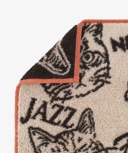 絵画のシンプルなタッチでさまざまなネコの表情を描き、ジャカードで表現しました。片隅には他アイテムのモチーフにしているアイコンの黒ネコを刺繍して、かわいいワンポイントをプラス。ふっくらとしたパイル素材を使用しており、吸水性が高く、普段使いにもぴったりです。