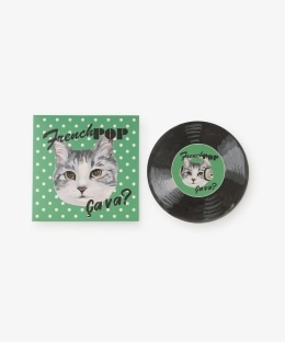 ヘッドフォンをするサバ美ちゃんのアートを中央に配置したかわいらしいアイテム。同じデザインを3枚入りにしており、レコードジャケット風のパッケージから出すとより一層雰囲気を楽しめます。音楽好きやネコ好きの方にメッセージと共に贈ってみてはいかがでしょうか。