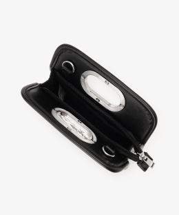 存在感のあるユニークなデザインで、日常のさまざまなシーンで使いたくなるアイテム。取り外し可能なショルダーストラップが付属しており、気分に合わせてポシェットとしてもお使いいただけます。間口はファスナー仕様で開け閉めしやすく、中身が飛び出しにくいのもうれしいポイントです。