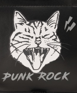 ロックな表情を浮かべるネコのアートをあしらった、レコードバッグ型のダイカットポーチです。