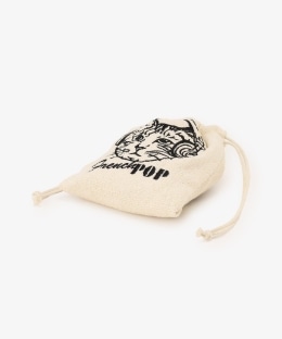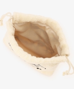 遊び心のあるデザインで、見ているだけで気分が明るくなりそうなアイテム。生地にはソフトな肌ざわりのパイル素材を使用しました。間口をきゅっと閉じられるため、中身が飛び出しにくいのもうれしいところです。持ち歩きやすいサイズ感で、メイクポーチやアクセサリー入れとしても使用できます。