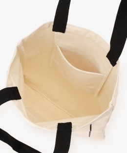 レコードをまわすネコのモチーフとロゴに加え、架空の住所や電話番号まで添えたこだわりのデザイン。内ポケットを備えた実用的な設計で、小物を整理して入れられます。お買い物から通勤、ちょっとしたお出かけまで幅広いシーンで活躍するアイテムです。