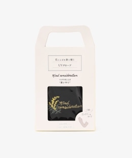 手の甲部分に「思いやり」が花ことばのミモザを刺繍しました。伸縮性のあるさらりとした肌ざわりで、フィット感のよいつけ心地なのもポイント。通勤通学、自動車や自転車の運転、ガーデニングなどのUV対策におすすめです。かわいらしいパッケージなのでギフトにしても喜ばれます。