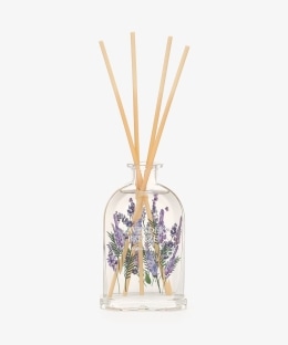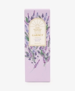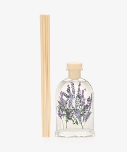 容器の両面に繊細な植物画をあしらった魅力溢れるデザインです。リビングや玄関先などに置く美しいインテリアとしても活躍します。時間経過により香りが変化するのもポイント。「ラベンダーブリーズ」は、癒しの風がそっと運ぶラベンダーのやすらぎを感じられます。