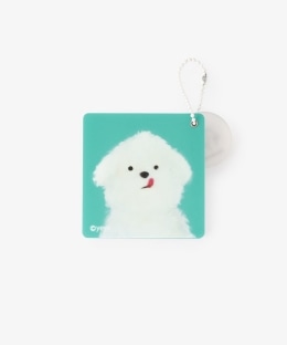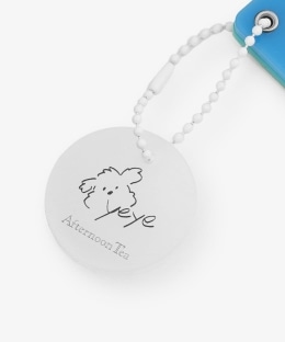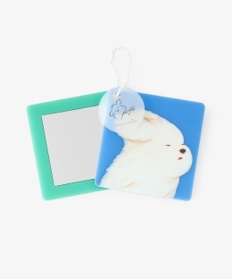 表面と裏面で異なるムンゲのアートを施しており、リバーシブルで楽しめます。双方のロゴを添えた、小さな丸いチャームがさりげないアクセントに。ボールチェーンは白で軽い印象に仕上げました。カバーをスライドさせるとサッと身だしなみチェックができ、外出先でも重宝します。