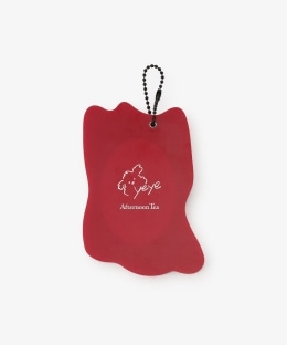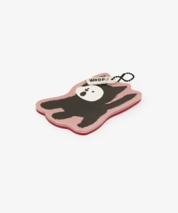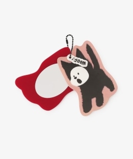 クロネコのコスチュームを着たムンゲと、吹き出し型のチャームが目を引くデザイン。裏面には双方のロゴが入っており、細かなところにまでこだわりが光るアイテムです。ボールチェーンは締め色の黒で、バランス良く仕上げました。カバーをスライドさせるとサッと身だしなみチェックができ、外出先でも重宝します。
