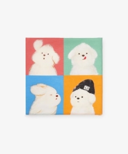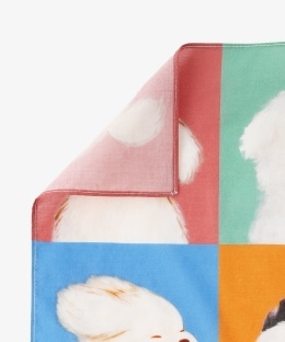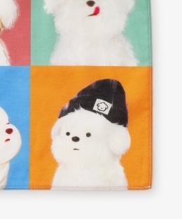 さまざまな表情やポーズのムンゲが、マス目状にデザインされています。綿100%の素材を使用したやさしい手ざわりかつ、大判サイズでお弁当包みやバッグの目隠しなどの幅広い用途で活躍するのが魅力。そのまま広げてお部屋の壁に飾ったり、お気に入りの額縁に入れたりと、インテリアのアートピースとしてお楽しみいただくのもおすすめです。