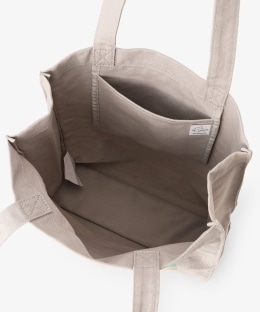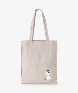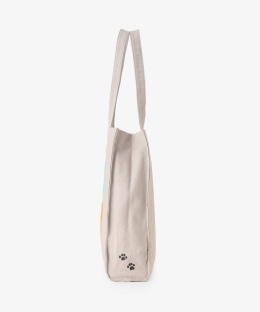側面にさりげなくプリントされた足跡のモチーフがアクセント。本体にはナチュラルな風合いの綿素材を使用しました。雑誌や書類がすっきりと収まる縦長フォルムで、普段のお出かけやサブバッグとして重宝するアイテムです。