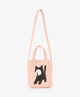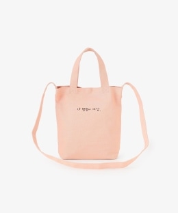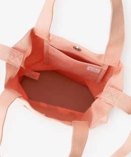 背面にはメッセージプリントを施し、さりげないアクセントになっています。本体にはナチュラルな風合いの綿素材を使用。ちょっとしたお出かけに重宝するサイズ感で、コーディネイトに遊び心をプラスしてくれます。