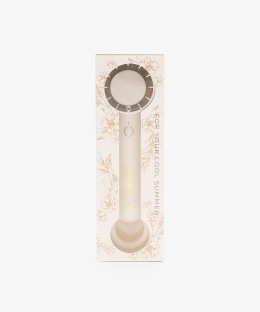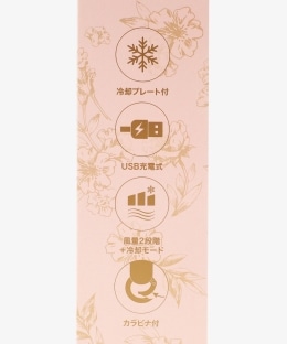 本体には上品なフラワーモチーフをあしらいました。バッグの持ち手などに簡単に取り付けられるため、外出時の持ち運びもスムーズです。シーンに合わせて、送風のみや冷却プレートを併用するモードを切り替えて、涼しさを楽しめます。