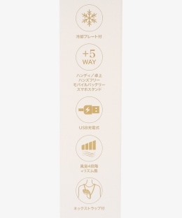 | 商品注意事項 | 付属品/充電用USBケーブル/Type-C、ネックストラップ、取扱説明書(保証書) 定格入力/DC5V/1000mA 内蔵電池/リチウムイオン蓄電池 3.7V 2500mA 9.25Wh 風量調節/4段階+リズム風 充電時間(約)/4.5時間(接続機器や環境により異なります) 連続使用可能時間(約)/3-10.5時間(ファンのみ使用時)、1時間自動OFF(ファン+冷却プレート) 本品はリチウムイオン蓄電池を使用しています。充電池の特性上、使用していなくても徐々に放電していく為、初回使用時に電源ボタンを押しても運転が開始されない場合があります。初回使用時は必ず充電してから使用してください。 充電する際は必ずそれぞれの機器の取扱説明書に記載された範囲の電源を使用してください。出力が不足したり過剰になると故障や作動の不具合、発熱、発火等の原因 となります。 急速充電には対応していません。 冷却プレートを一か所にあてる時間は5-10分程度にしてください。 箔加工製品は、摩擦や使用を繰り返すことにより表面の光沢が低下し薄くなることがあります。特性上、避けることができないため予めご了承ください。 ハンドクリームや薬品の付いた手でプリント部分を触ると剥離の原因となりますのでご注意ください。 付属の注意書きをよく読みご使用ください。 |