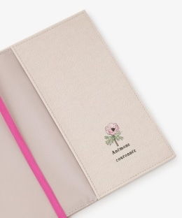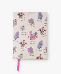 落ち着いたカラーをベースに、バラやパンジー、ヒヤシンスといったシックな花柄とフランス語が描かれています。内側の折り返し部分にも可憐なアネモネのイラストを添えており、随所にこだわりが光るアイテムです。本の厚みに合わせて調節できるバンドと、読みかけのページに挟める便利な栞紐付き。ご自身用にはもちろん、本が好きな方へのギフトとしてもおすすめです。