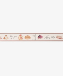 スイーツやカトラリーモチーフ、フランス語の美しいカリグラフィーを並べた、フレンチシックなデザイン。25mmと少し広めの幅なので、イラストのかわいらしさを存分に楽しめます。お手持ちのノートや手紙へのデコレーションなど、幅広い用途で活躍するアイテムです。