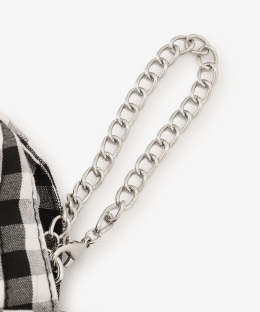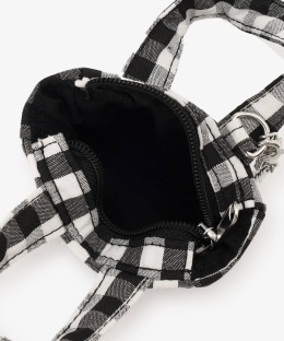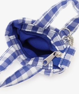 間口のファスナーから内側まで、リアルさにこだわって作りました。ギンガムチェック柄でポップな雰囲気を出しているのがデザインのポイント。チェーン部分はカニカン仕様なのでバッグやポーチに簡単につけられます。飴や常備薬など、ちょっとした物を一時的に入れておくのにちょうどいい大きさです。