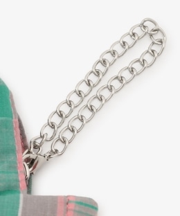 間口のファスナーや内側など、細部までこだわって作りました。カラフルなチェック柄のアソートがデザインのポイント。チェーン部分はカニカン仕様なのでバッグやポーチに簡単につけられます。飴や常備薬など、ちょっとした物を一時的に入れておくのにぴったりな大きさです。