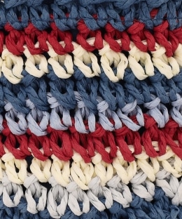 小物が入る立体的なフォルムに仕上げました。シックなネイビーを基調に、コントラストの効いた配色がアクセントになっています。間口はきゅっと絞れる巾着タイプで、中身が落ちにくいのもうれしいところ。カラビナがセットになっているので、お手持ちのバッグやポーチなどに付けてカスタマイズを楽しめます。