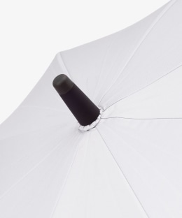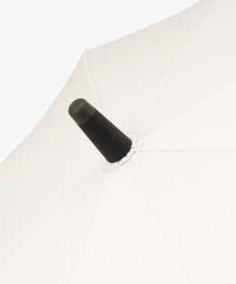 太陽、雨、風への対策が万全な全天候仕様で頼りになる1本。内側にブラックPUコーティングを施した遮光率100%とUVカット率100%の生地を使用しており、日差しや熱をブロックします。機能面では、衝撃を吸収するグラスファイバー骨とグラつきにくいシャフトにすることで、雨風に強い構造を実現しました。洗練されたバイカラーのデザインに握りやすいマットな質感の持ち手を組み合わせ、実用性とファッション性を両立させたこだわりのアイテムです。