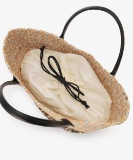 | 素材 | 本体:植物繊維(ジュート) 口布・ポケット・底板:綿 持ち手:牛革 |