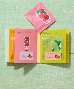 | 素材 | ○シャルドネダージリン【紅茶/香料】○オレンジアールグレイ【紅茶/香料】○フルーツルイボスティーピーチ&マンゴー【ルイボス/香料】○ライチベリーアッサム【紅茶/香料】○ダブルメロンウーロン【半発酵茶、レモングラス、レモンバーベナ/香料】○ラ・フランスルイボス【ルイボス/香料】○パイナップルグリーンティー【緑茶、レモンマートル/香料】 |