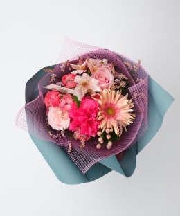 母の日に贈るお花の代名詞・カーネーションやバラなどを組み合わせました。可愛らしく華やかなピンクをメインに組み合わせた、ボリュームたっぷりのアレンジメントです。