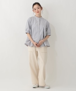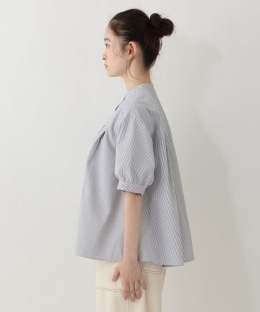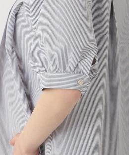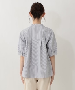 細めのストライプ柄をあしらった、爽やかでかわいらしいデザイン。前後にタックをあしらい、立体感のあるシルエットに仕上げました。さらりとした肌ざわりで着心地が良いのも魅力。合わせるボトムスを選ばず、幅広いコーディネイトに重宝する1枚です。