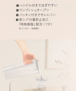 | 商品注意事項 | 耐熱温度/(本体)100℃、(フタ・栓)110℃、(フタパッキン)180℃ 耐冷温度/(本体)-30℃、(フタ・栓)-20℃、(フタパッキン)-40℃ 冷蔵庫の種類・収納場所によって収納できない場合があります。 |